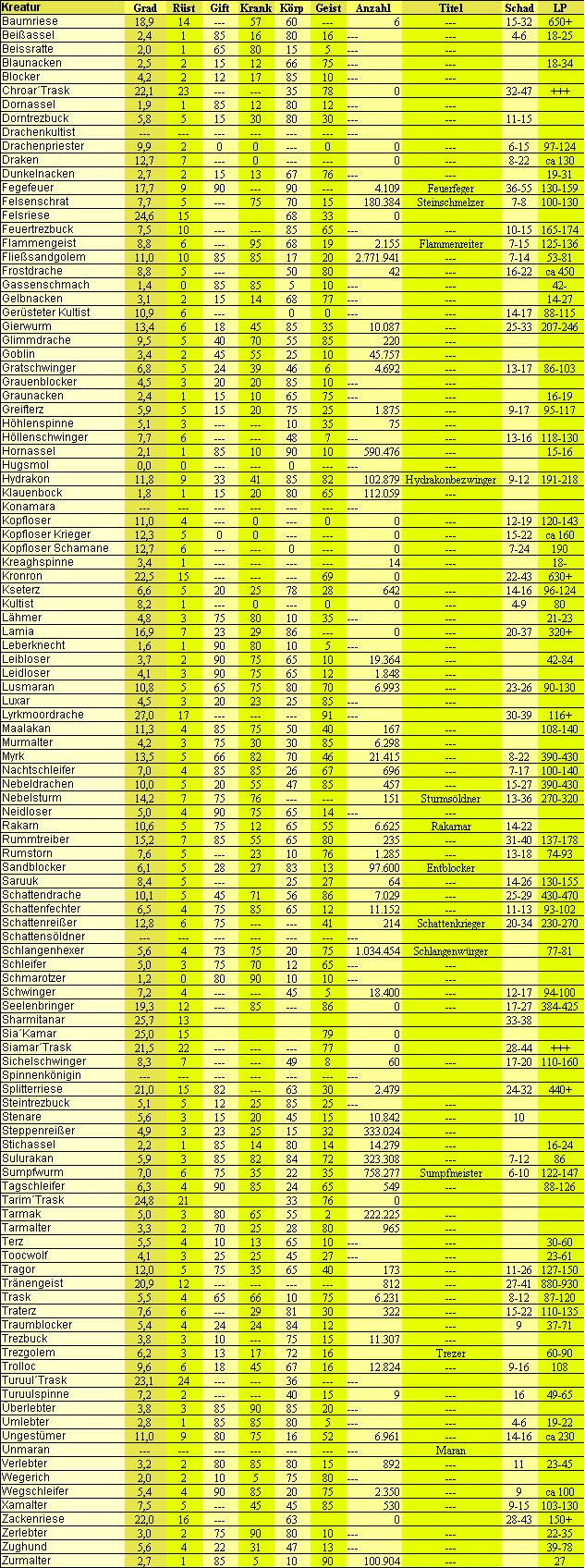 Liste der Kreaturen